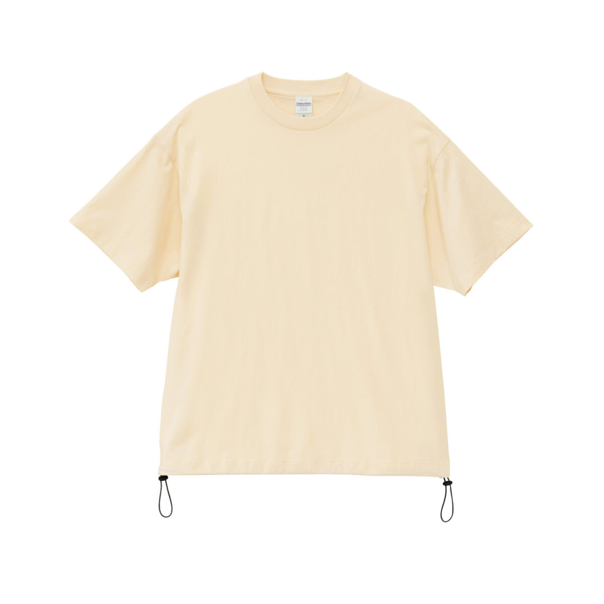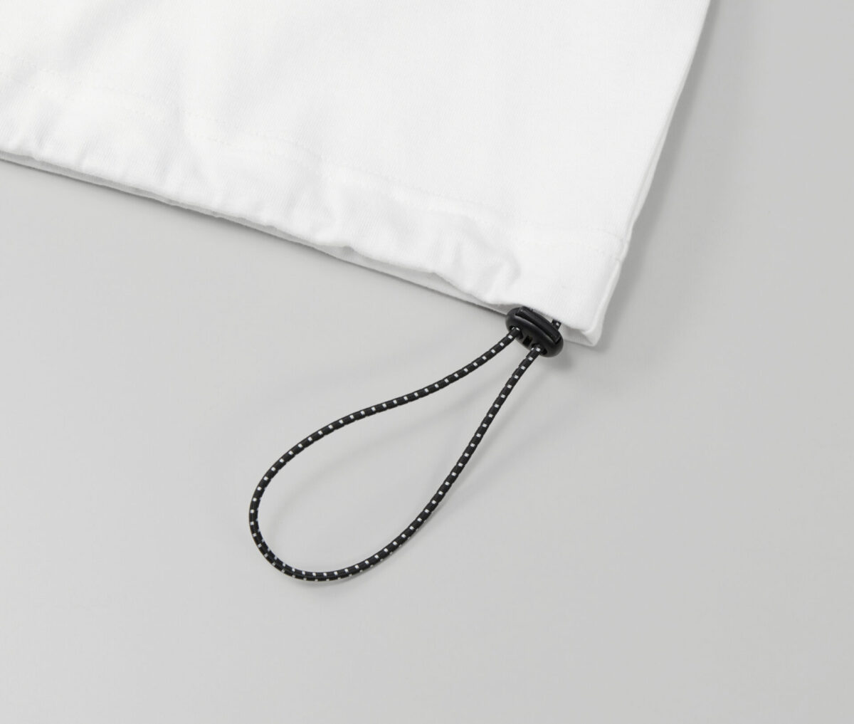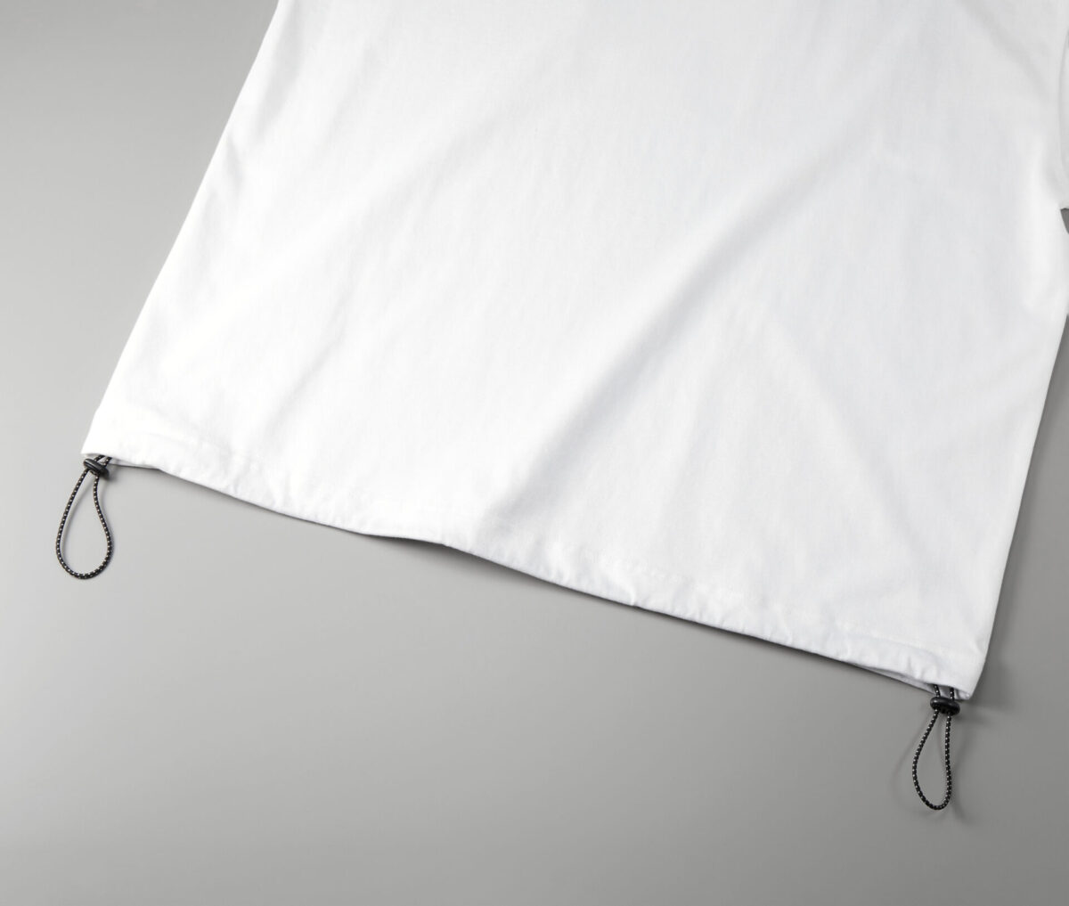 左右の裾口に、アクセントとなるバイカラーのドローコードを配したTシャツ
