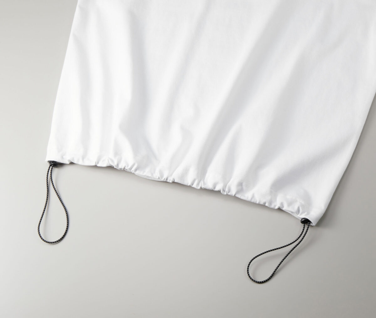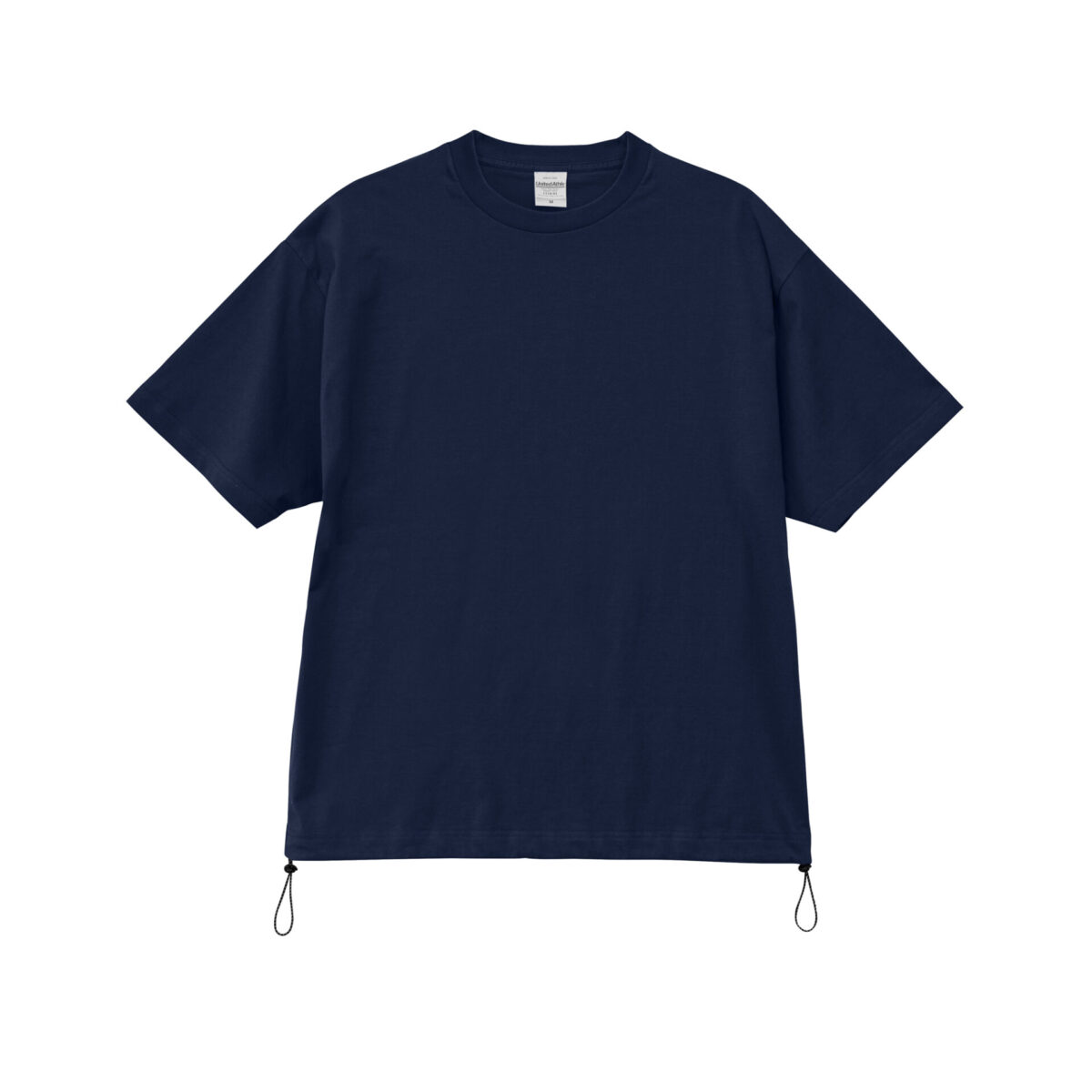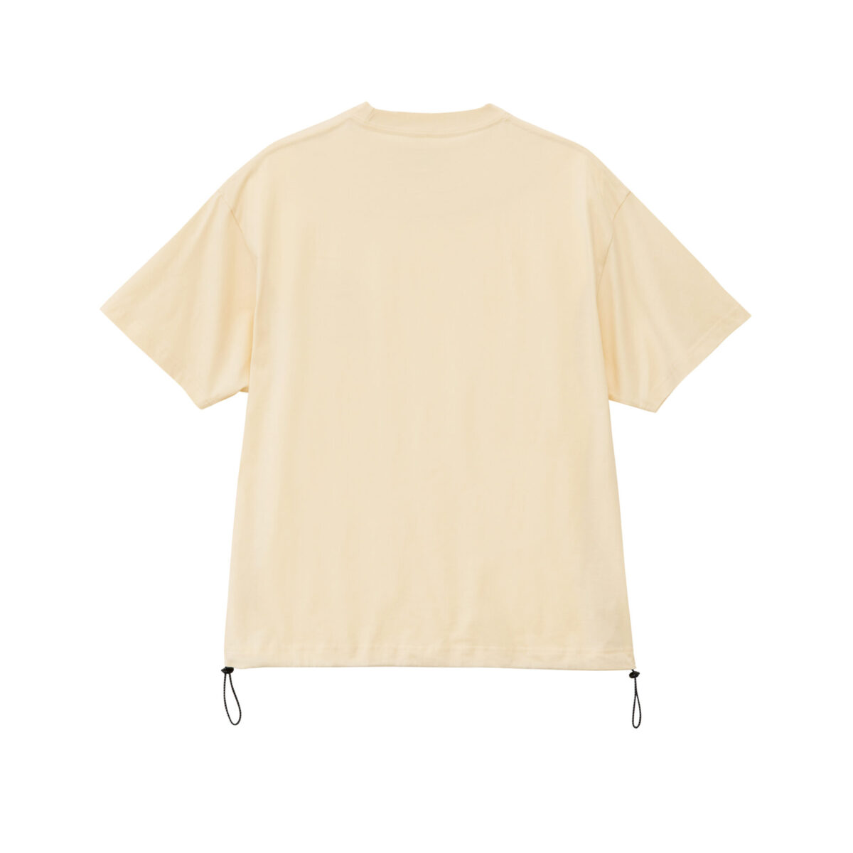 左右の裾口に、アクセントとなるバイカラーのドローコードを配したTシャツ