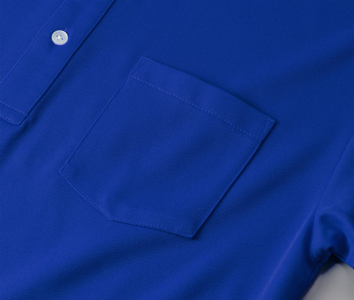 名札を付けたり、ペンを差したりできるポケ付きタイプはビジネスユースにも人気のため、デイリーユースできるよう、鹿の子編み×ポリエステル100%の生地を採用