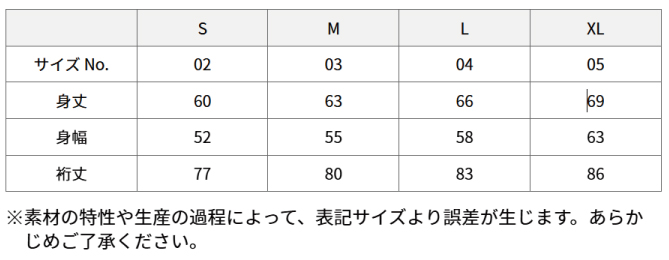 サイズ展開 | S~XL |