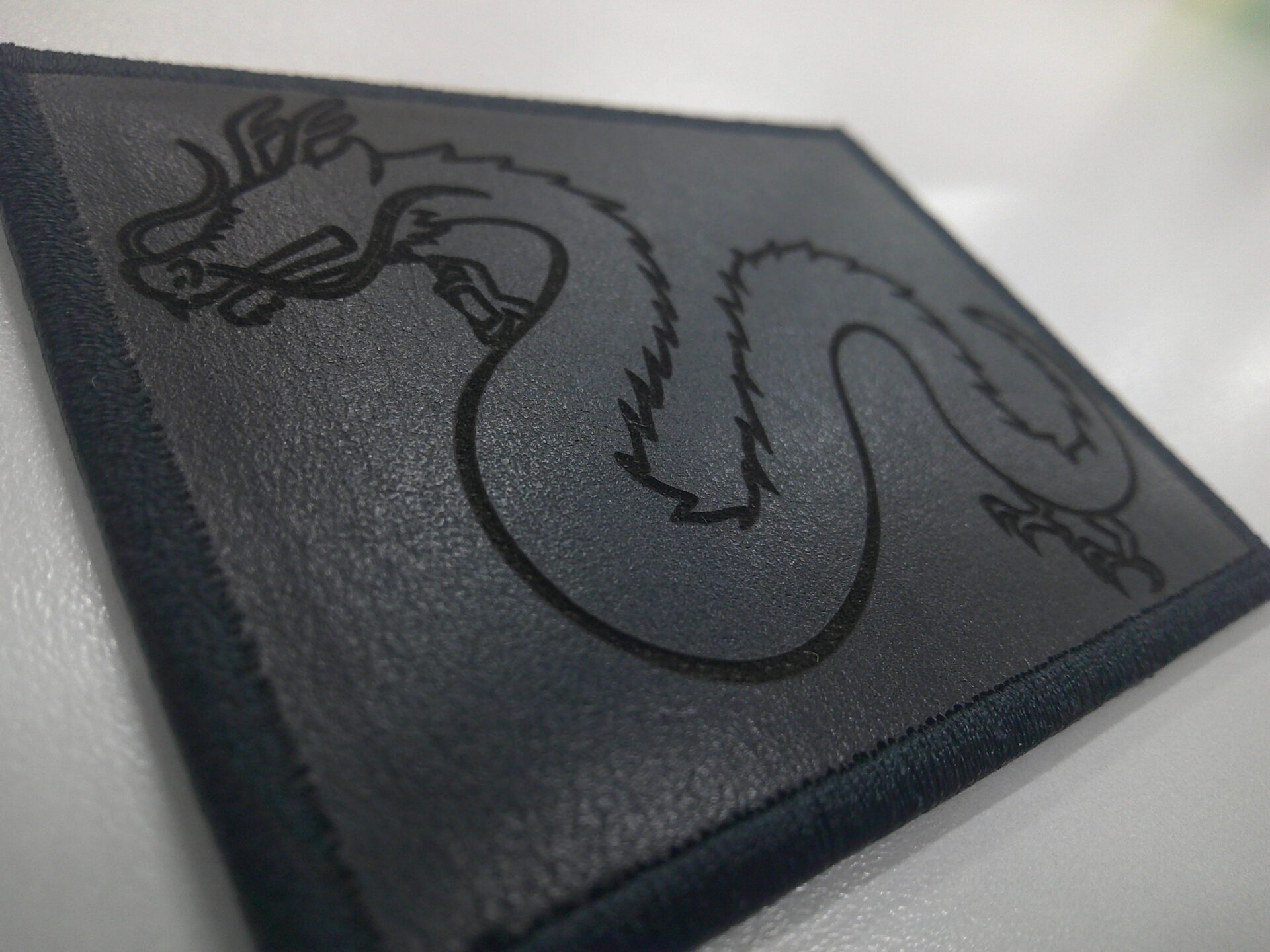 当店のレザーパッチはレーザーカット機による「彫刻」「切断」によってお作りしております 分かりやすく言えば「焼き切る」ことによる制作です |