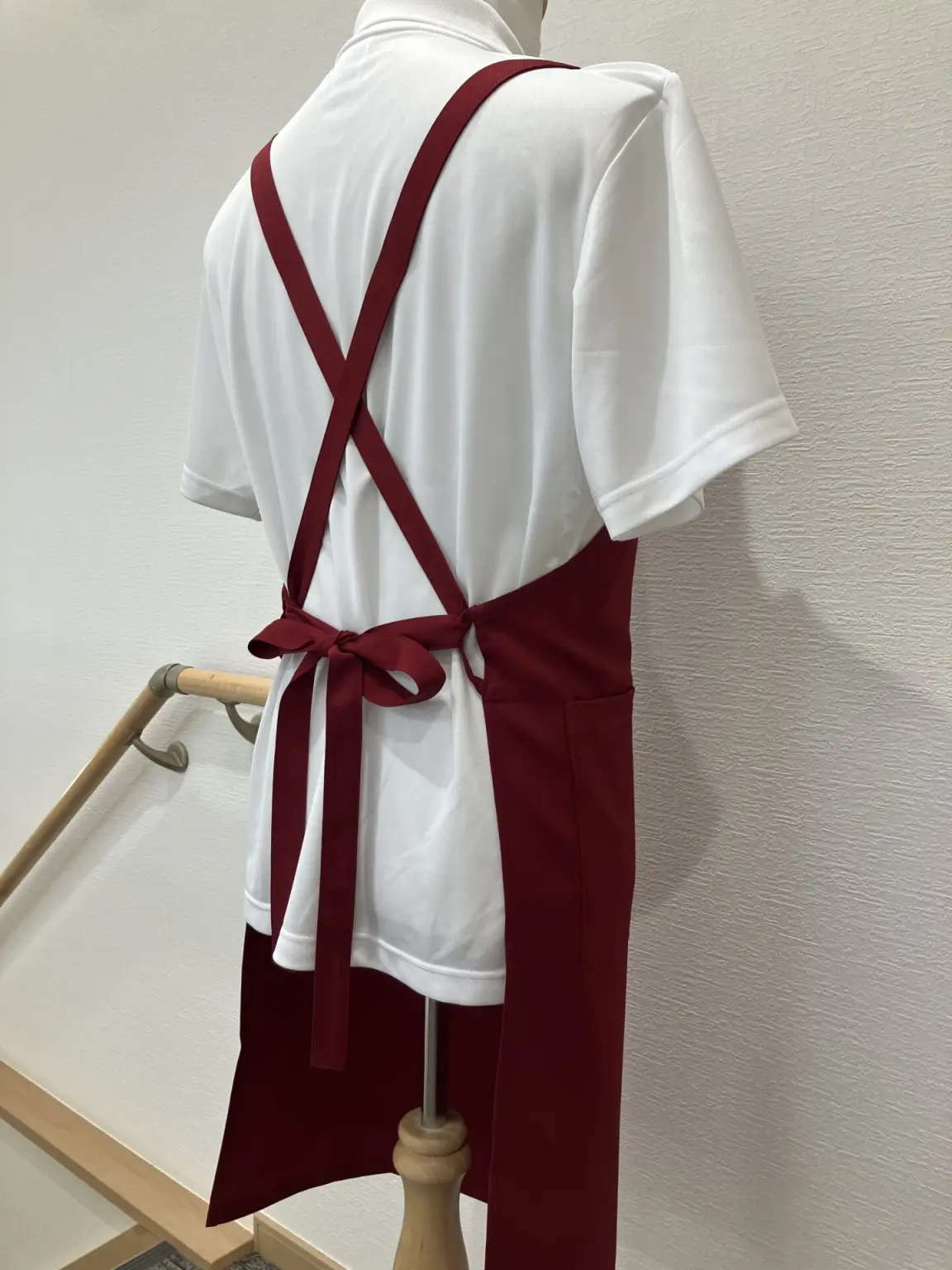 肩ひもがズレ落ちてこない、安心のX型・胸当てエプロン