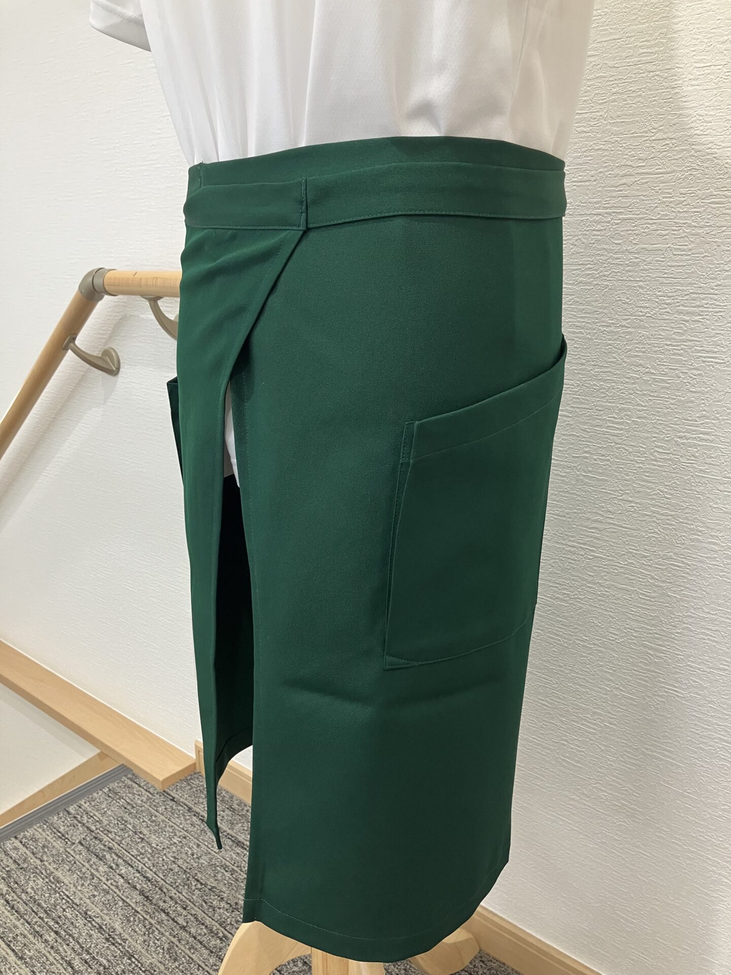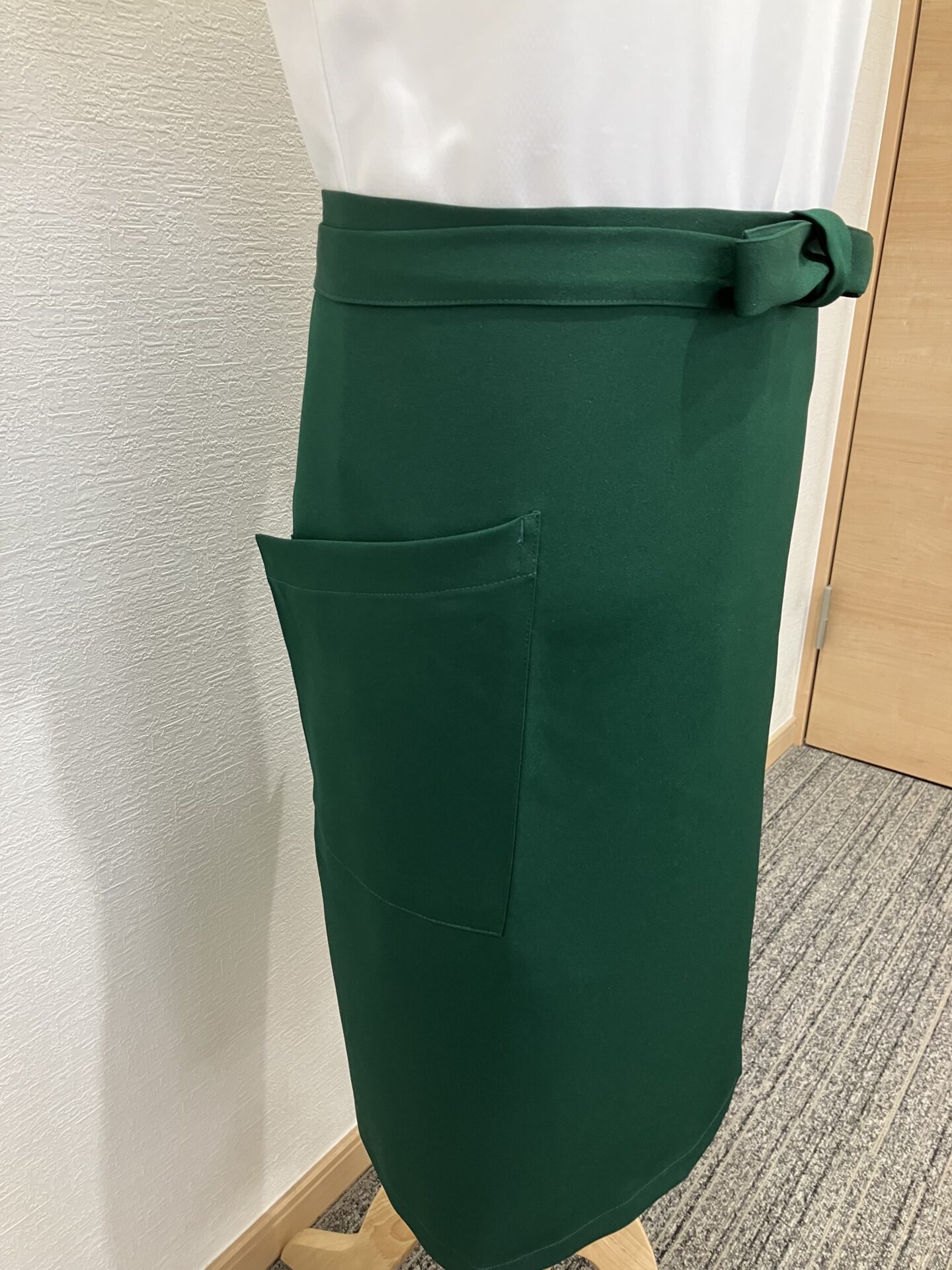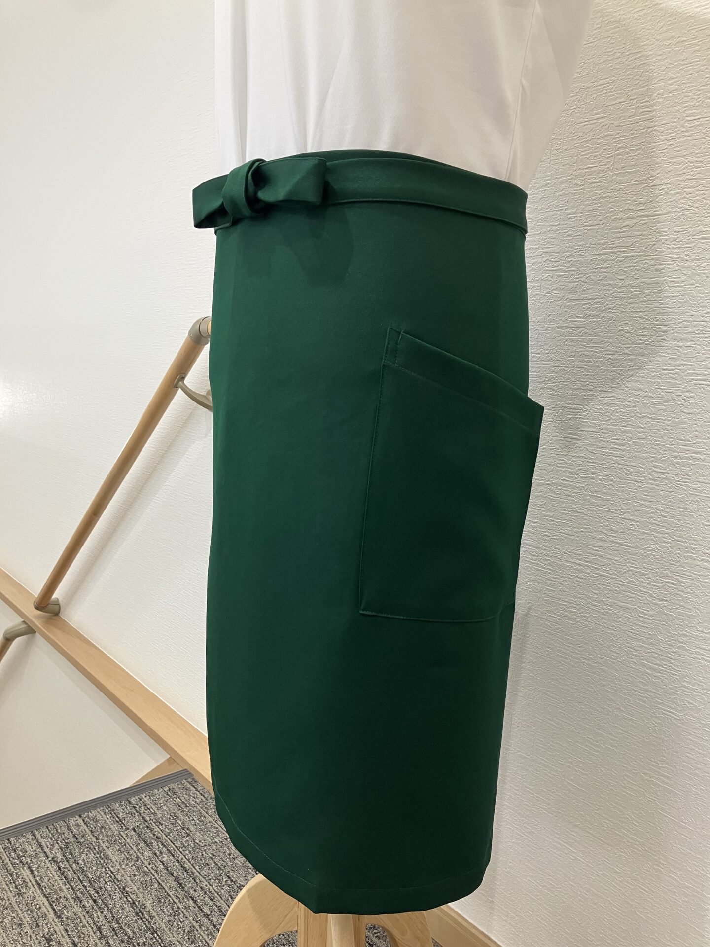 ベーシックなデザインと足さばきの良さが人気のミドルエプロン 両脇にアウトポケット付きで便利です 生地の質感・シルエット共にとても美しいエプロンです |