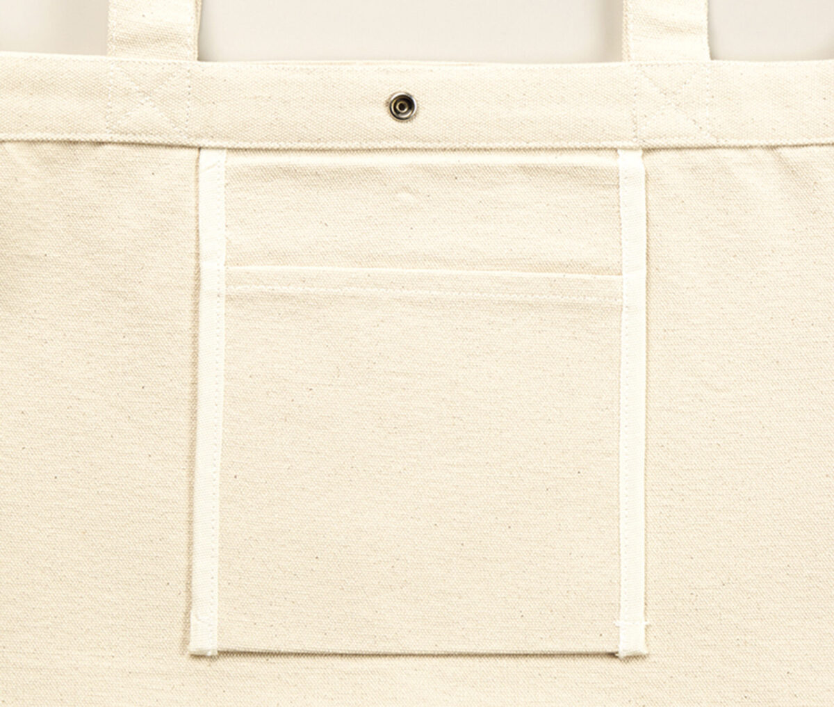 | 素材 | 綿 100% キャンバス 生地目付 ナチュラル:405g/m2 12.0oz/yd2 カラー:390g/m2 11.5oz/yd2 ※袋口ドットボタン付き ※内ポケット付き ※019.ナチュラルは、環境に配慮し漂白工程をなくした無漂白商品です | |