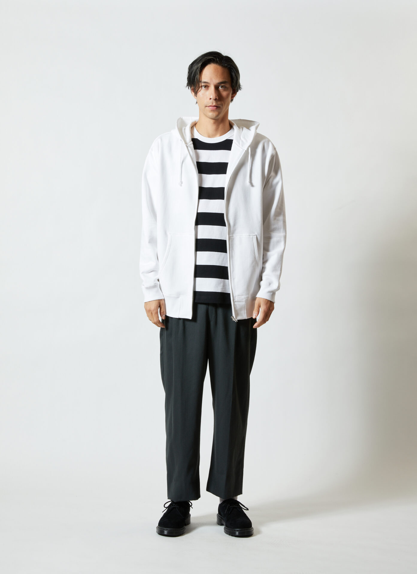 裏パイル生地のフルジップパーカタイプは、着用シーン・コーディネートの幅を広げられる万能アイテム