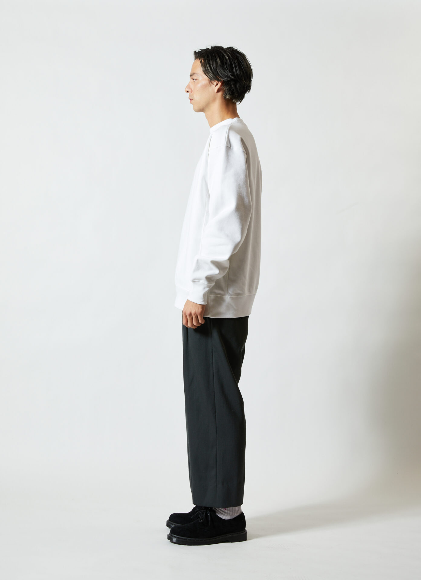 生地目を横取りしサイドパネルのリブ仕様となっているため、型崩れしにくく、洗うほどにタフになり、着こむほどに独特の風合いとエイジングが楽しめます