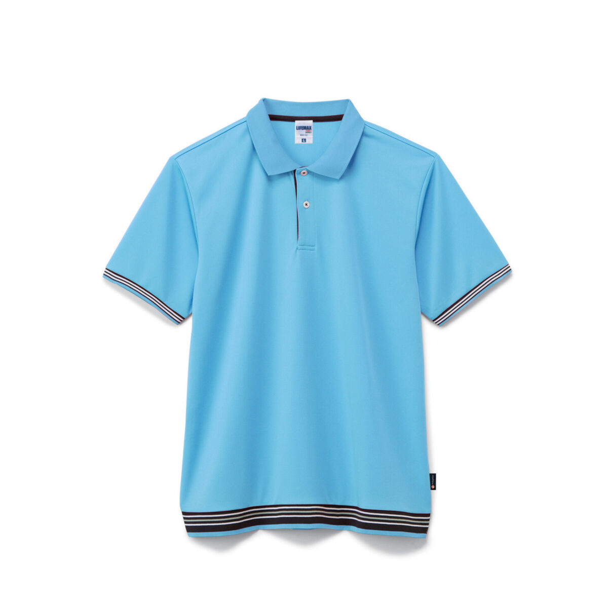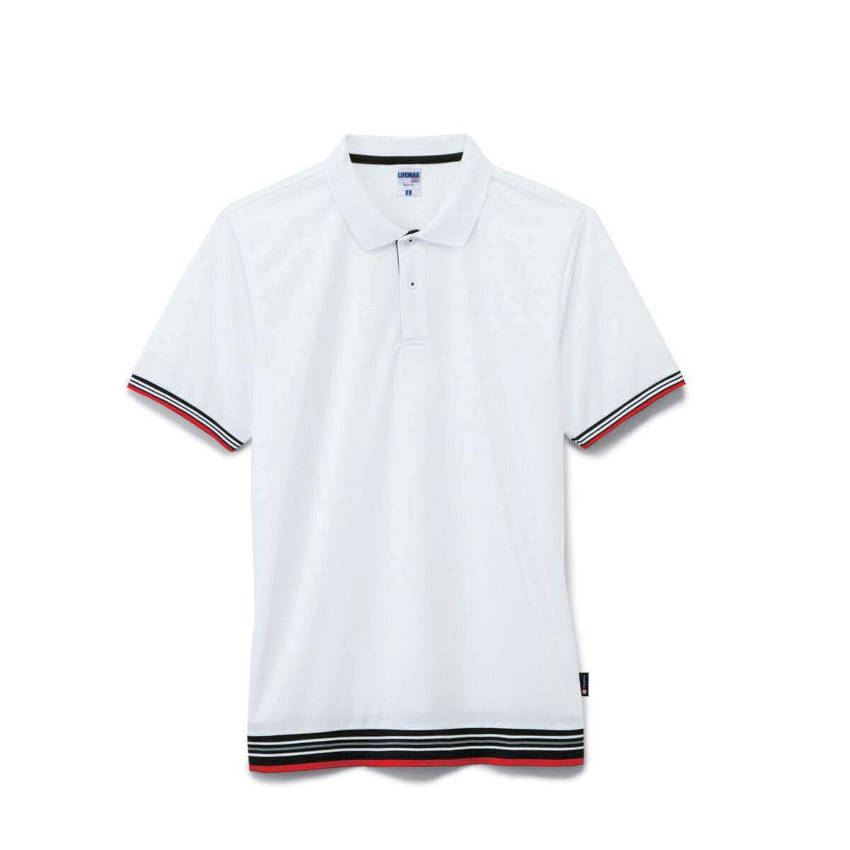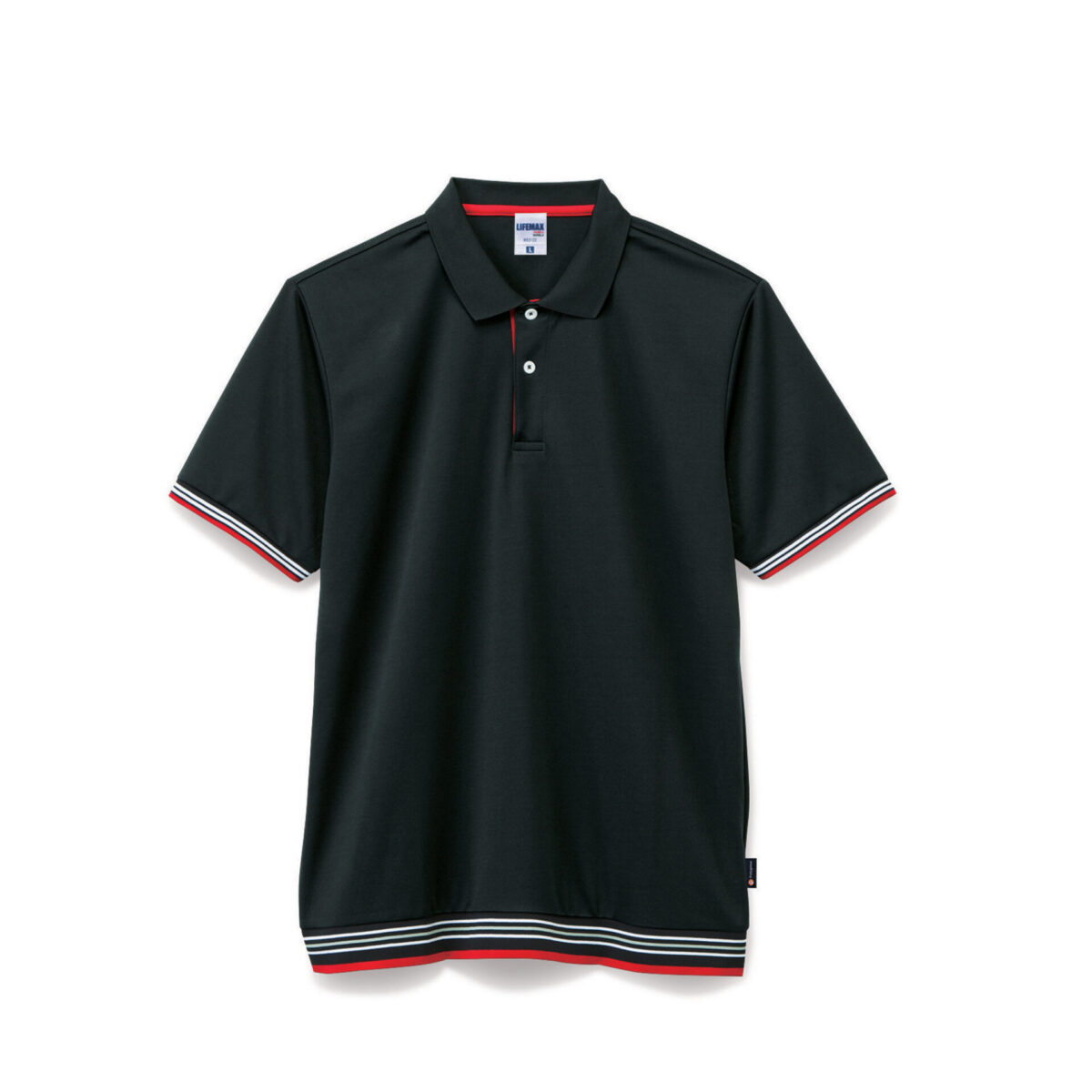 裾・前立て・袖のラインがアクセントのデザインポロシャツ