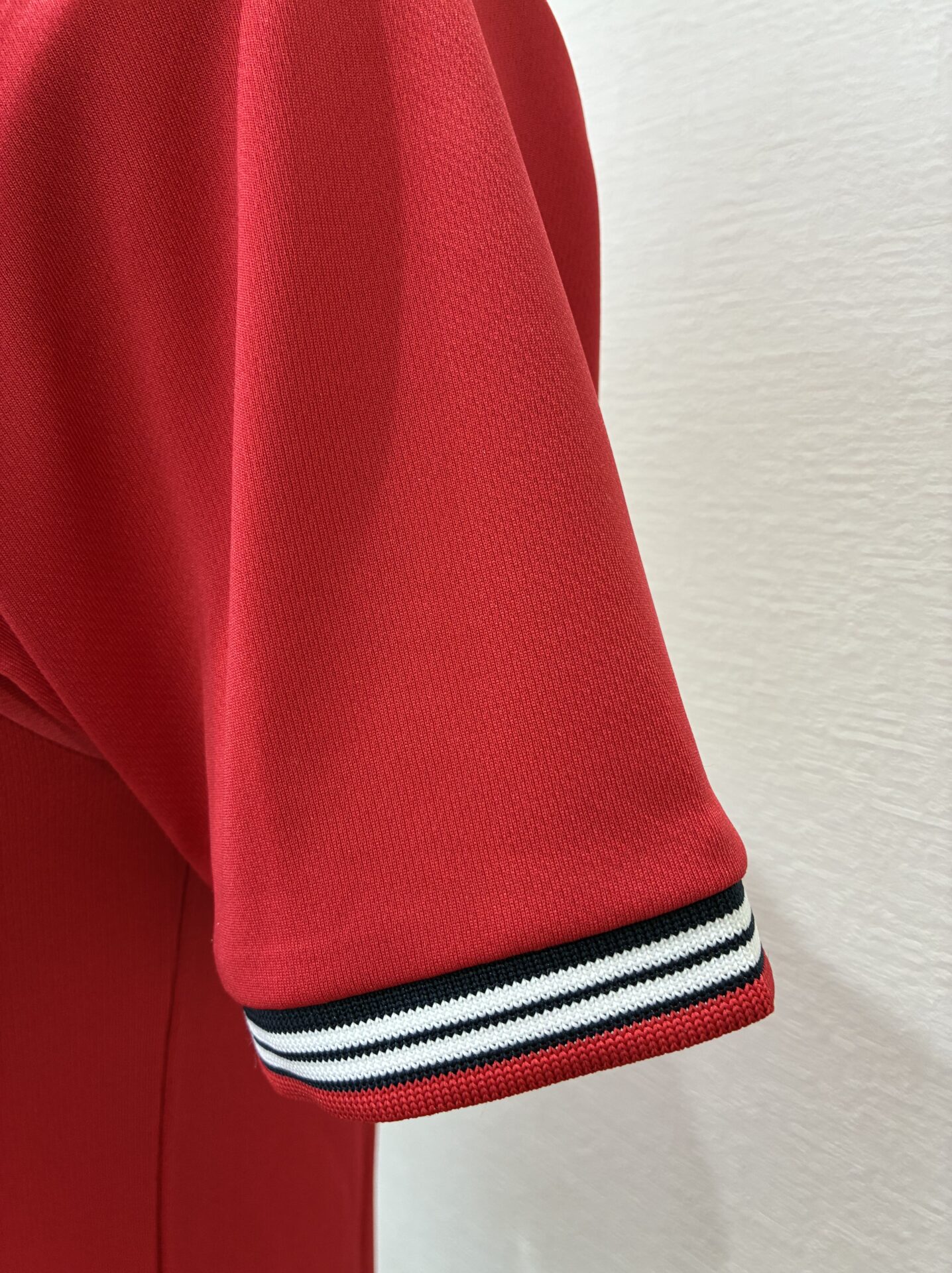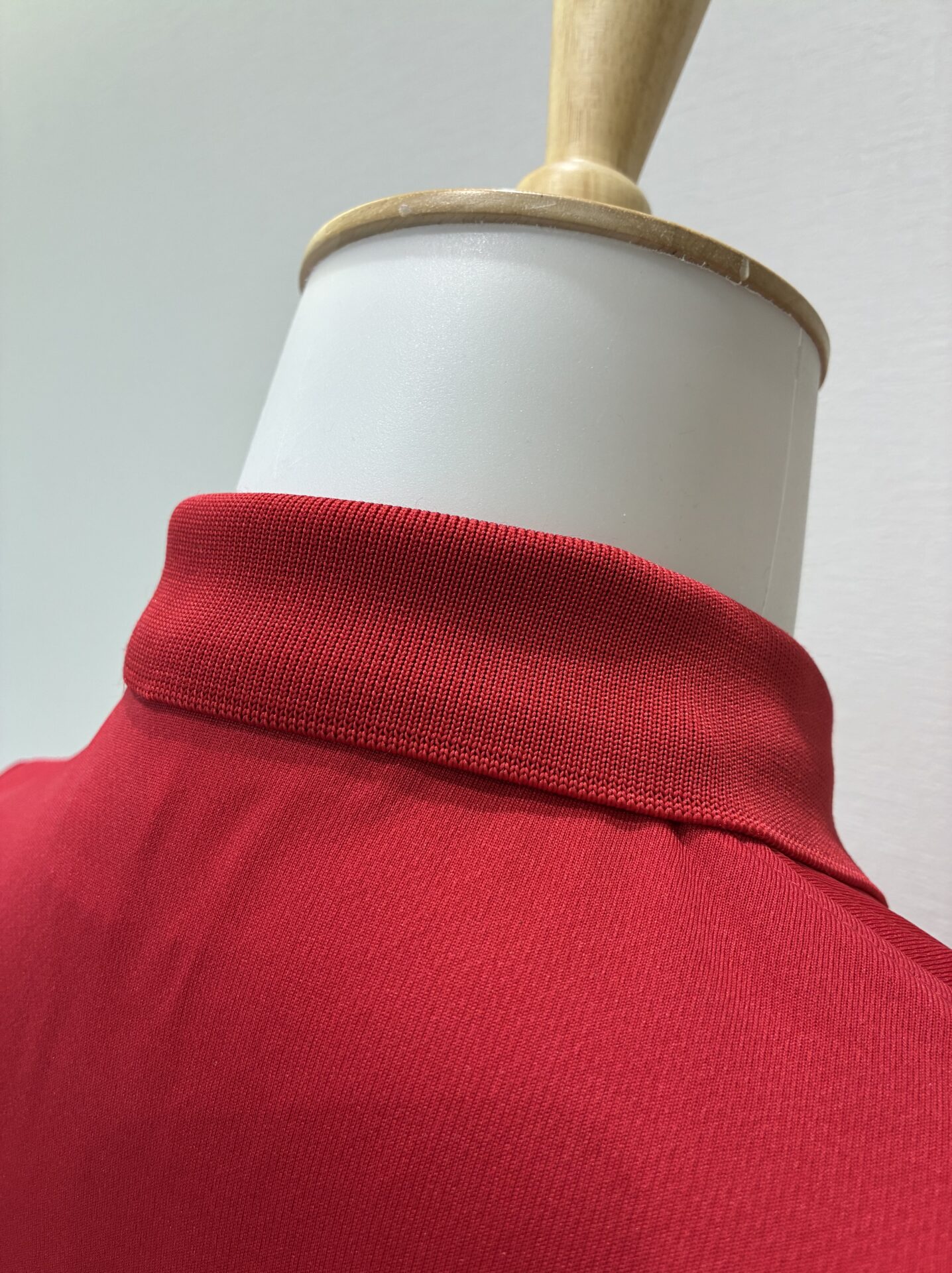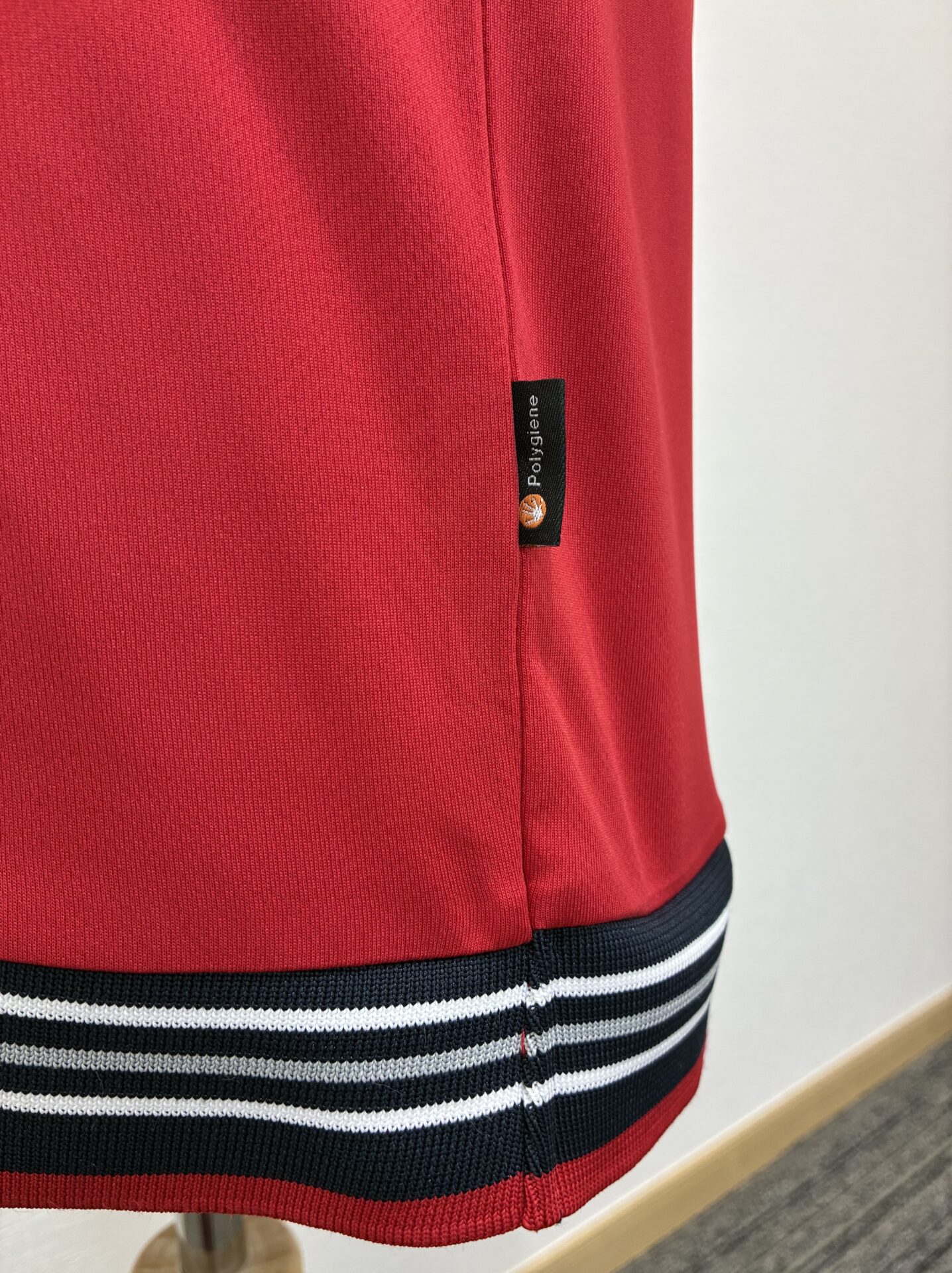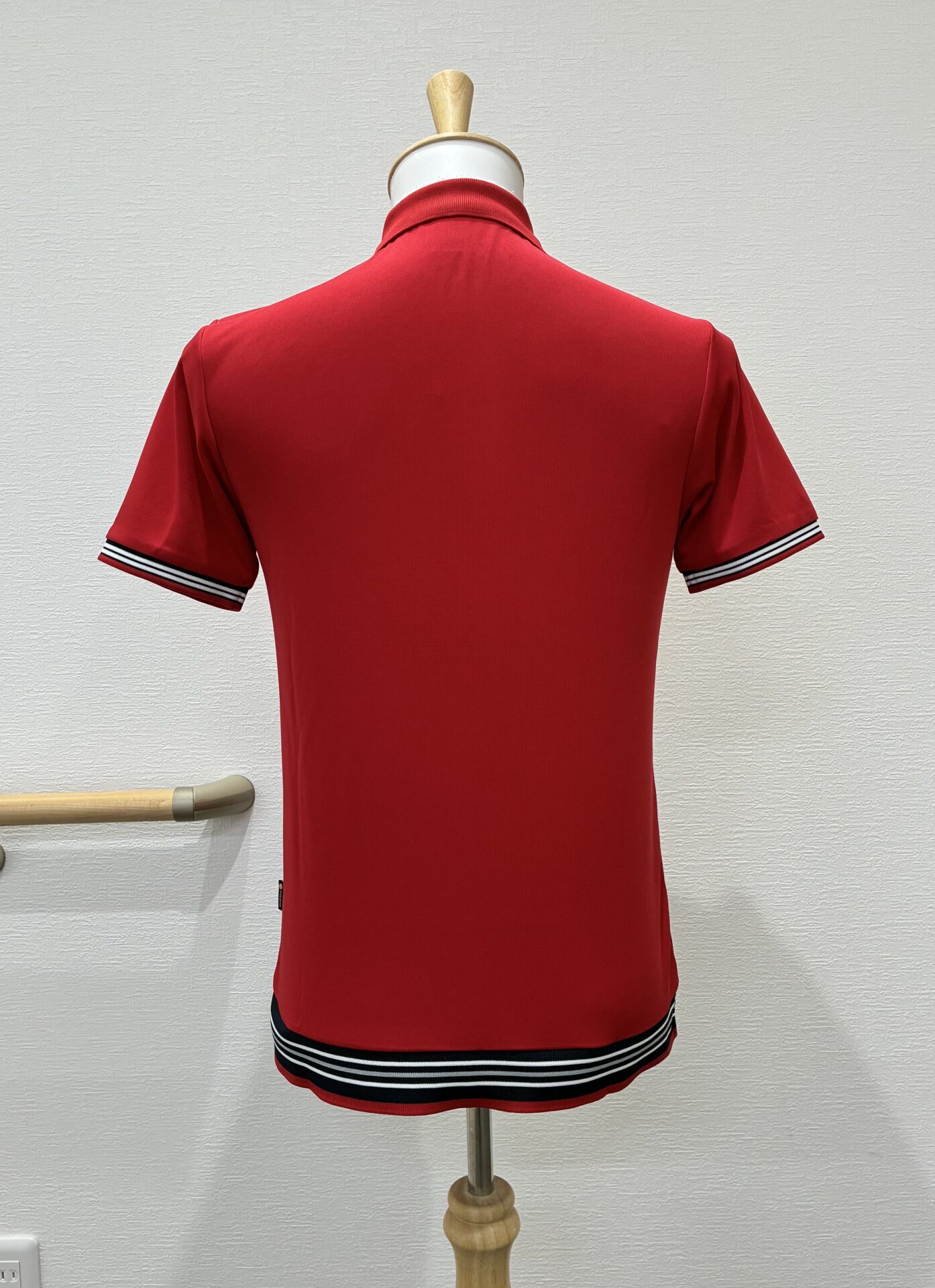 裾・前立て・袖のラインがアクセントのデザインポロシャツ