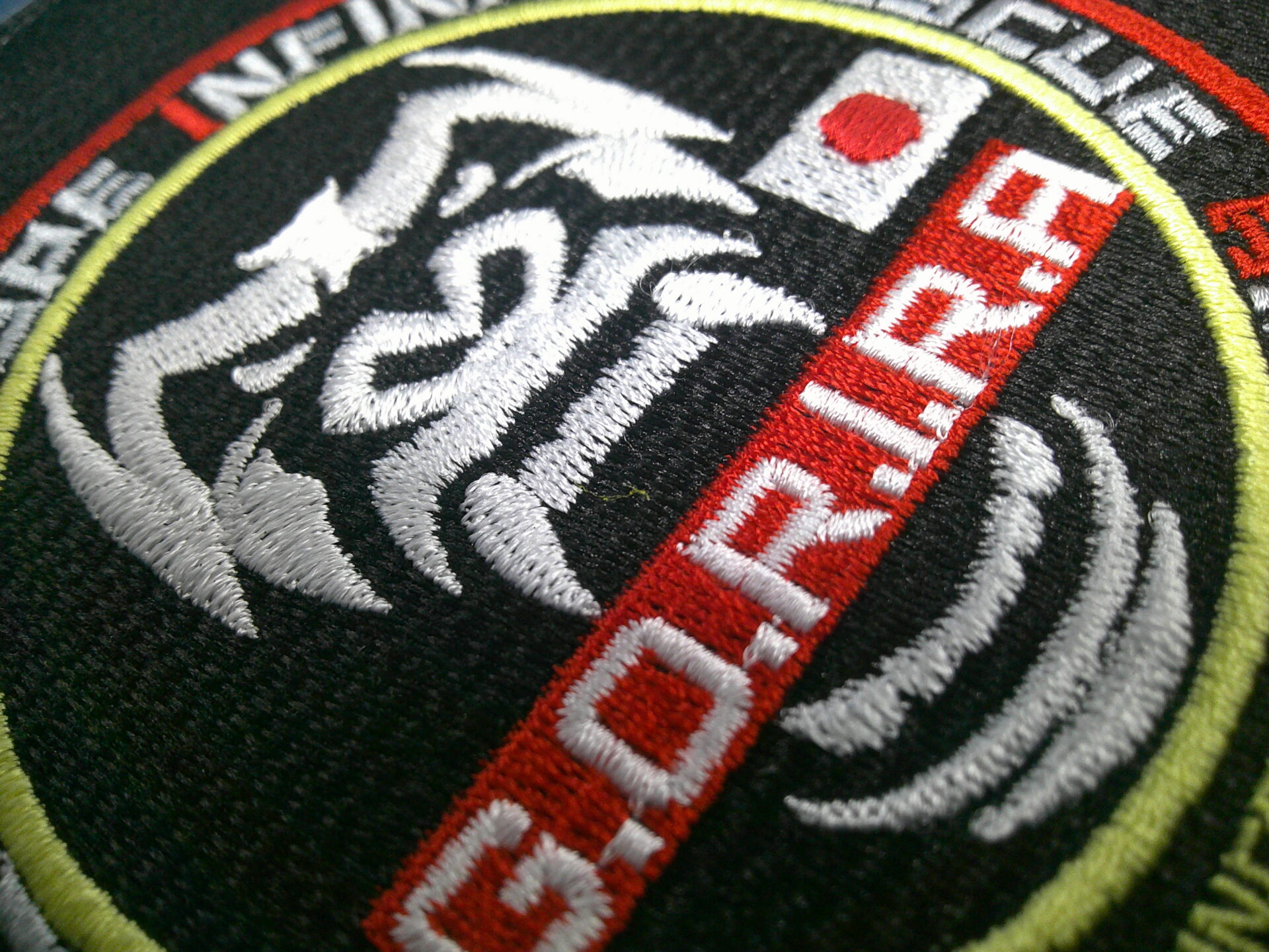 JUKI工業用ミシンでウェアーやアイテムに頑丈にワッペンを縫い付けします